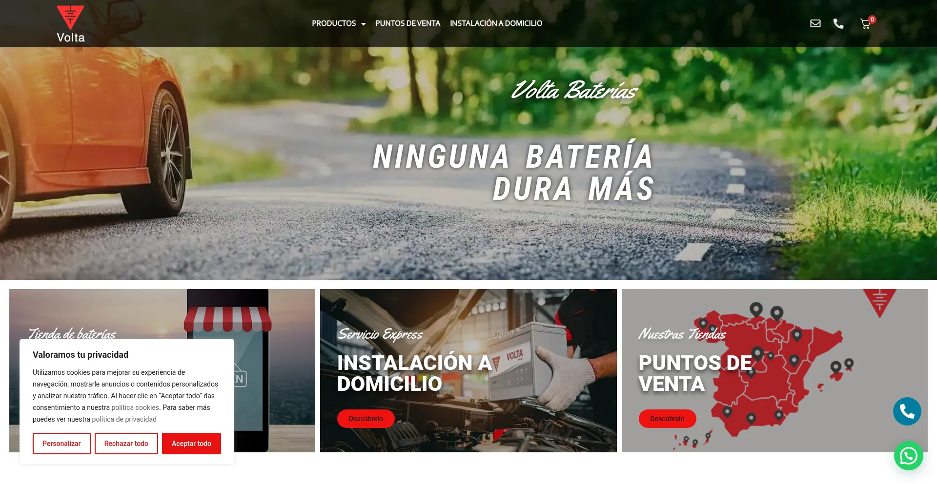 Amplio catálogo de baterías para coche, moto, camión, barco y sistemas solares. Asesoramiento experto y garantía en Volta Baterías | Envío Gratis 24h!