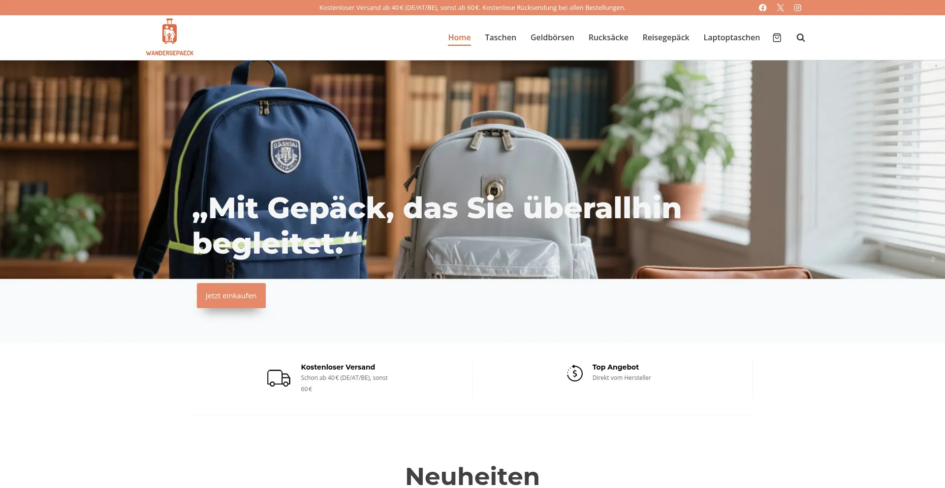 Die Analyse zeigt, dass wandergepaeck.com Social-Media-Icons oder Links anzeigt, die nicht zu legitimen Social-Media-Profilen führen. Diese täuschende Praxis wird häufig eingesetzt, um falsche Legitimität zu schaffen und stellt einen signifikanten Indikator für betrügerische Absicht dar, der sofortige Vorsicht erfordert.