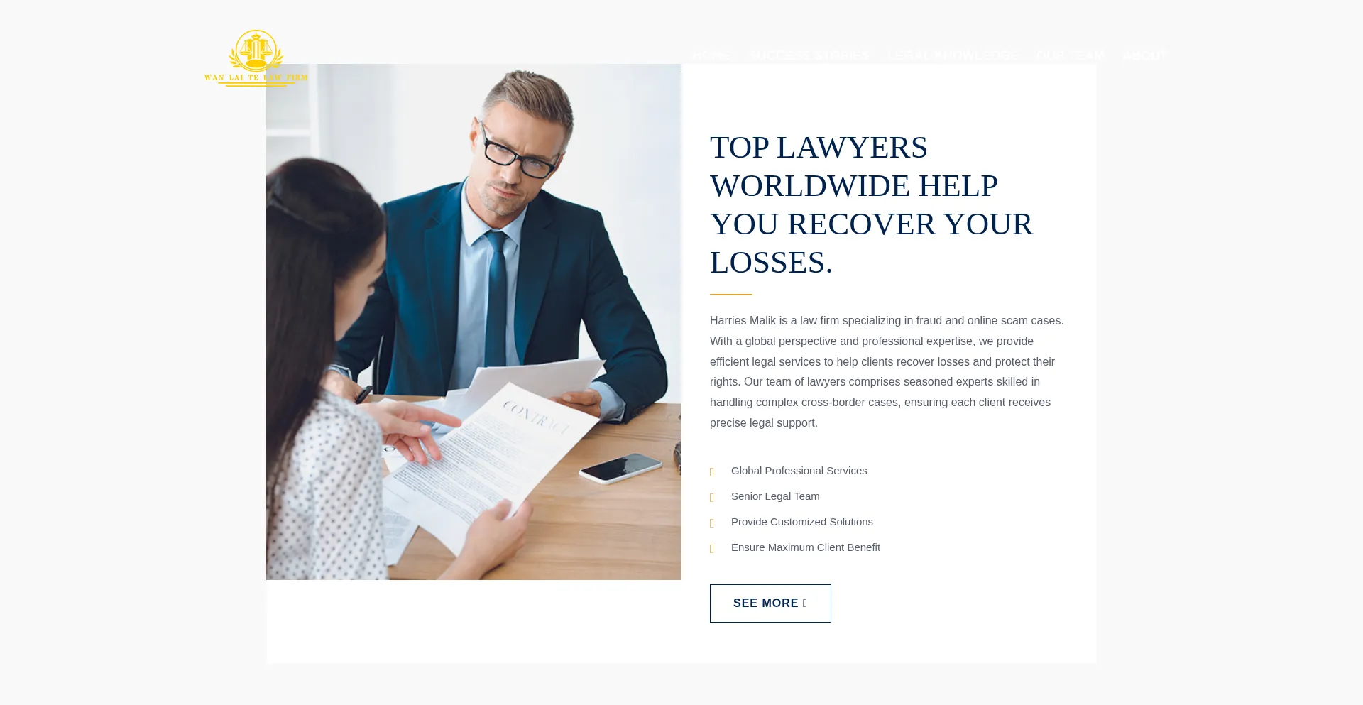 Die Website wanlettlawfirm.com bewirbt Fondswiederherstellungsdienste für verlorene oder gestohlene Vermögenswerte. Während einige auf Erfolgshonorarbasis operieren, können andere Vorauszahlungen erfordern, was auf betrügerische Operationen hinweisen kann. Verifizieren Sie Anmeldeinformationen und regulatorische Compliance, bevor Sie solche Dienste in Anspruch nehmen.