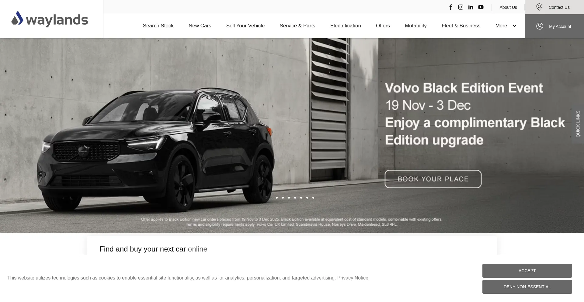 Visit Waylands in Thames Valley, established dealership and servicing specialist. Explore the website and browse through our full range of offers for all things Volvo, Kia, Hond...