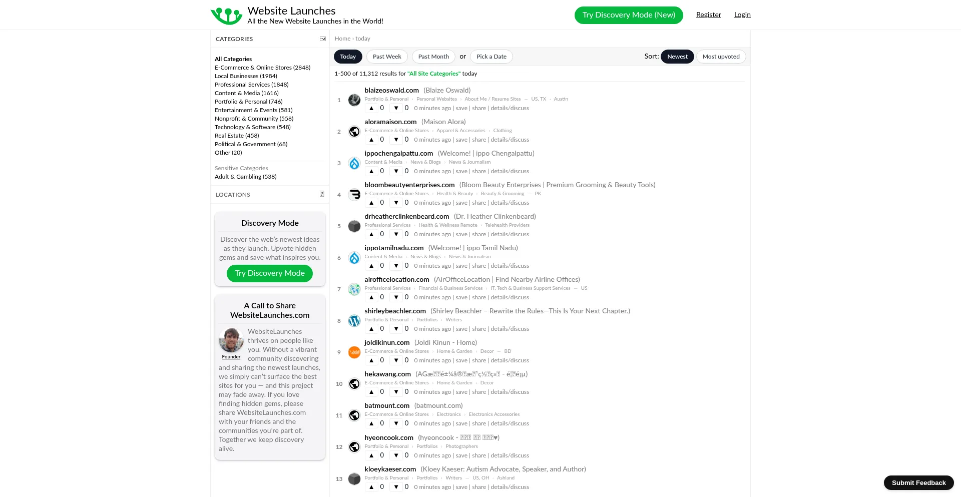 See the newest websites launched (Today). Updated continuously.
