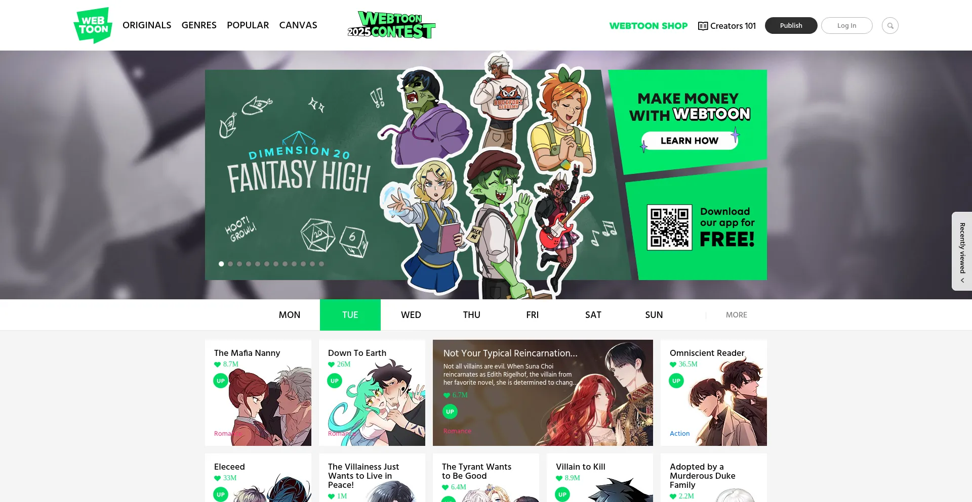 WEBTOON is home to thousands of stories across 23 genres including romance, comedy, action, fantasy, and horror. Read comics, webcomics, manga, and manhwa online or download the...