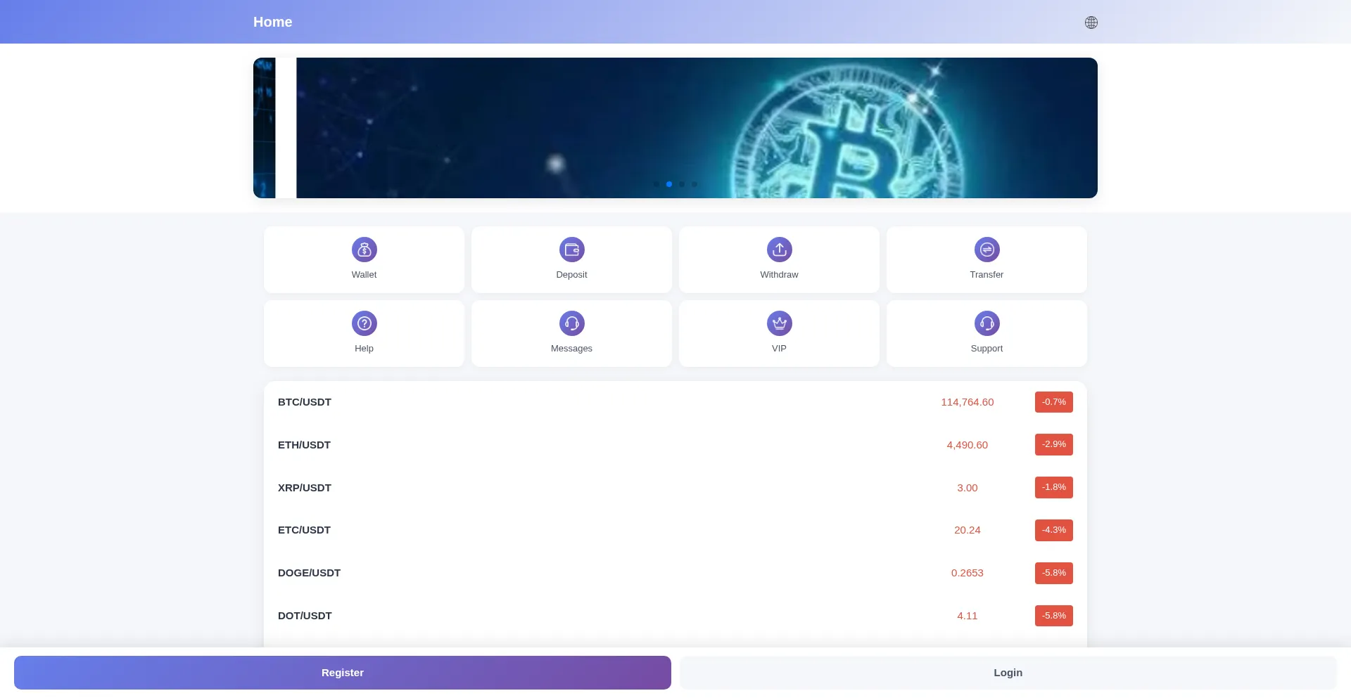 Cryptocurrency, Financial Service, Registration Form, Bootstrap Framework, Google Tag Manager, Cloudflare Browser Insights, Zepto.js Framework, Respond.js Framework, Young Domain
