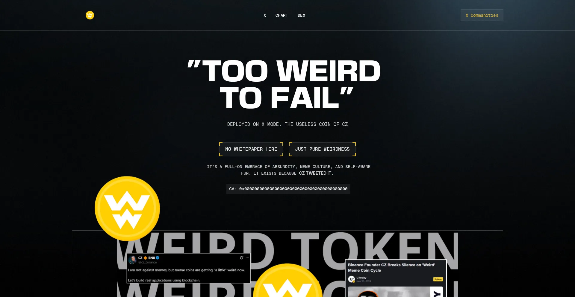CZ said “weird,” so we built a religion. Decentralized Delusion Since the Tweet. Full conviction.