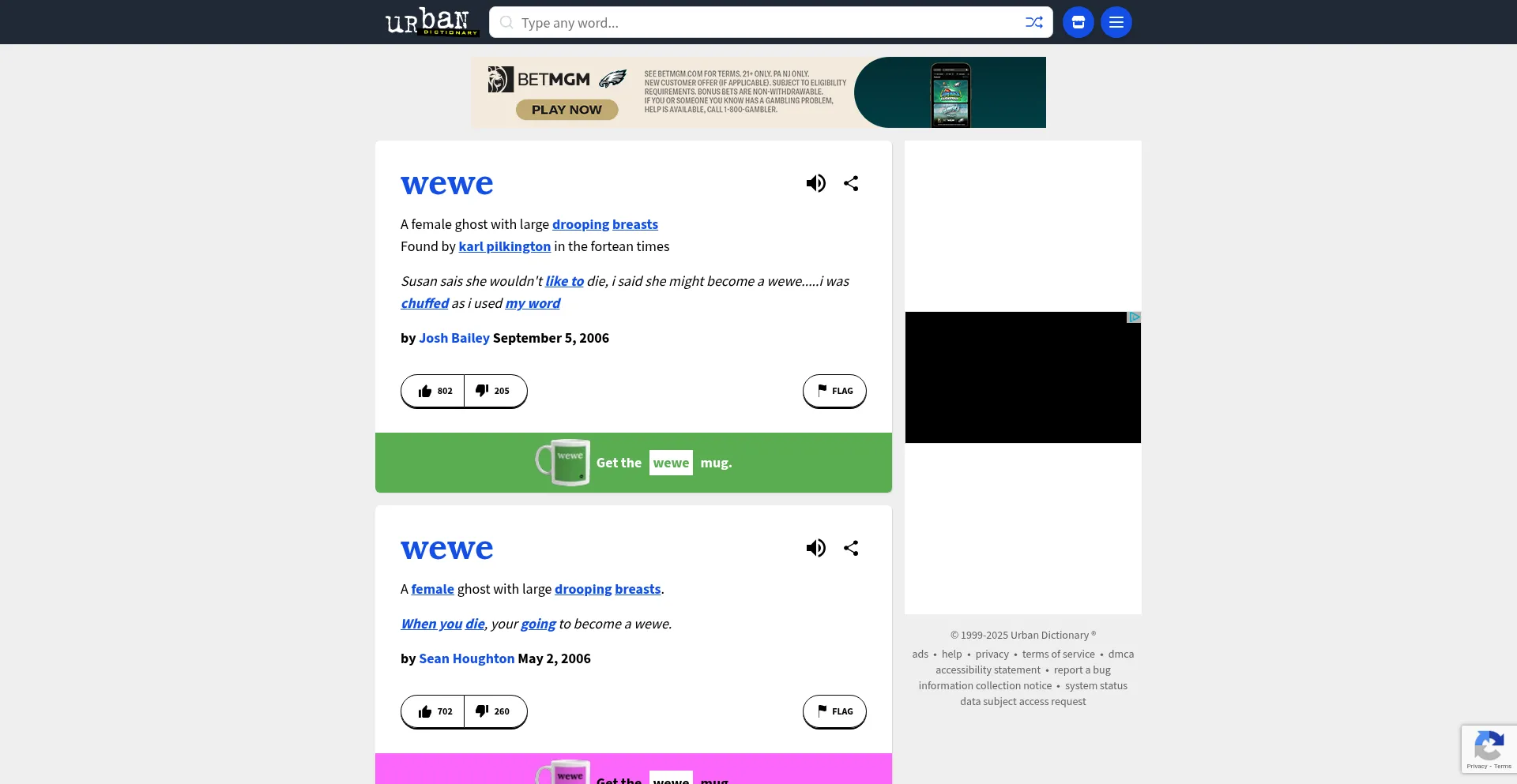 wewe: A female ghost with large drooping breasts Found by karl pilkington in the fortean times