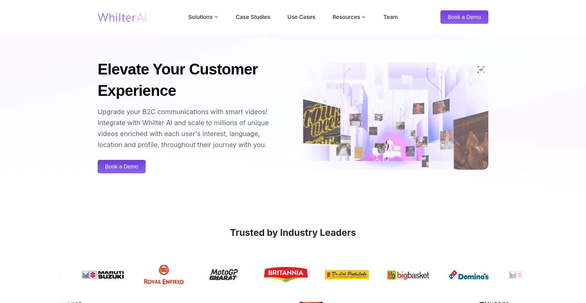 Enhance B2C communications with Whilter AI’s smart videos. Scale unique, data-driven videos tailored to each user’s interests, language, and location for an impactful journey.