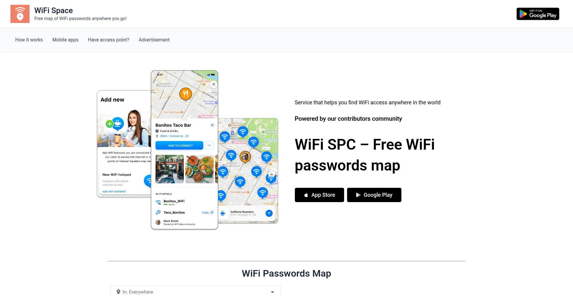 WiFi Space – Free map of WiFi passwords anywhere you go!