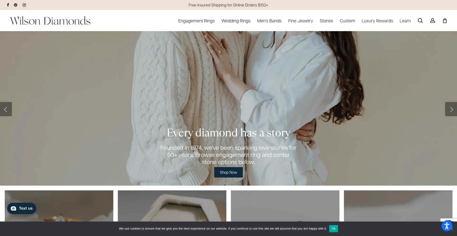 Die Anwesenheit von Social-Media-Links auf der Website deutet darauf hin, dass wilsondiamonds.com offizielle Konten auf Social-Media-Plattformen beibehält, was ein positiver Indikator für Glaubwürdigkeit und Engagement ist.