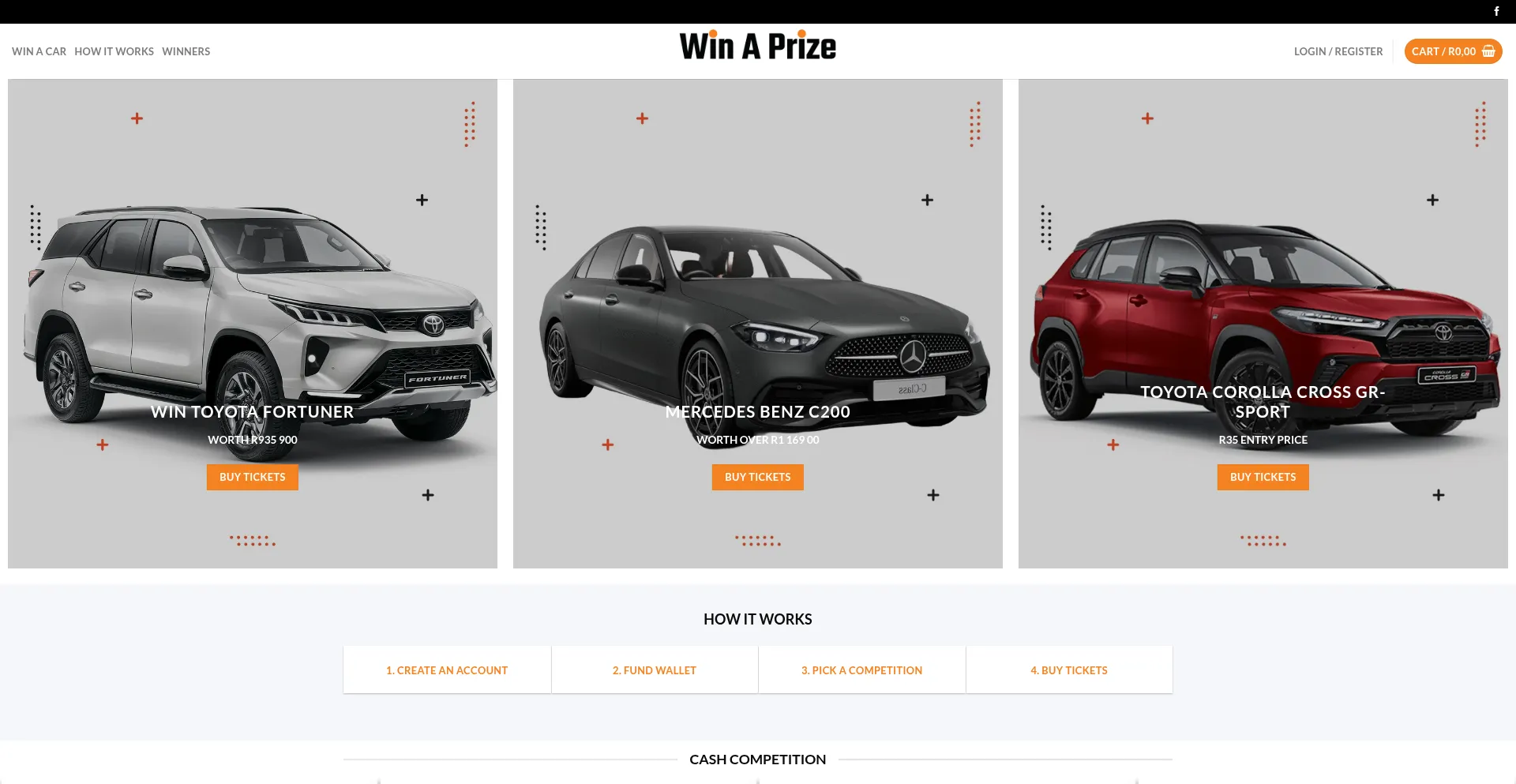 win Toyota Fortuner WORTH R935 900 Mercedes Benz C200 WORTH OVER R1 169 00 Toyota Corolla Cross GR-Sport R35 ENTRY PRICE HOW IT WORKS With Only 1 Ticket WIN