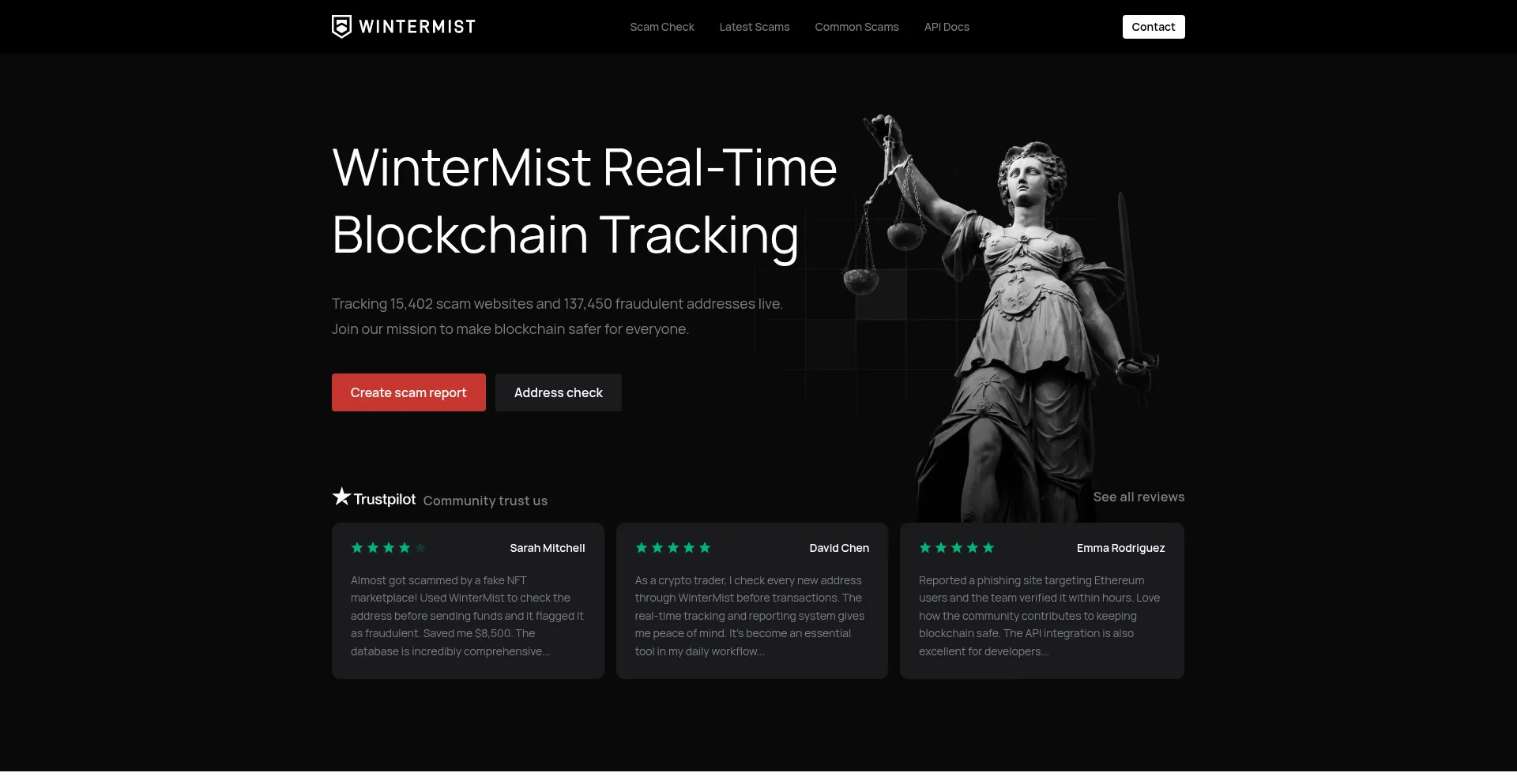 WinterMist provides real-time tracking of scam websites and fraudulent blockchain addresses to help keep web3 users safe.