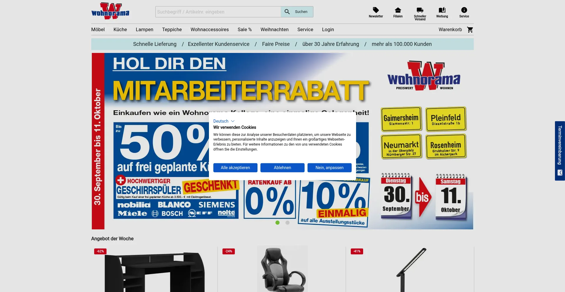 Das Möbelhaus und Küchenstudio Wohnorama von A wie Ankleidezimmer über Rollmatratzen bis zu Z wie Zeitungsständer können sie bei uns alles bekommen.