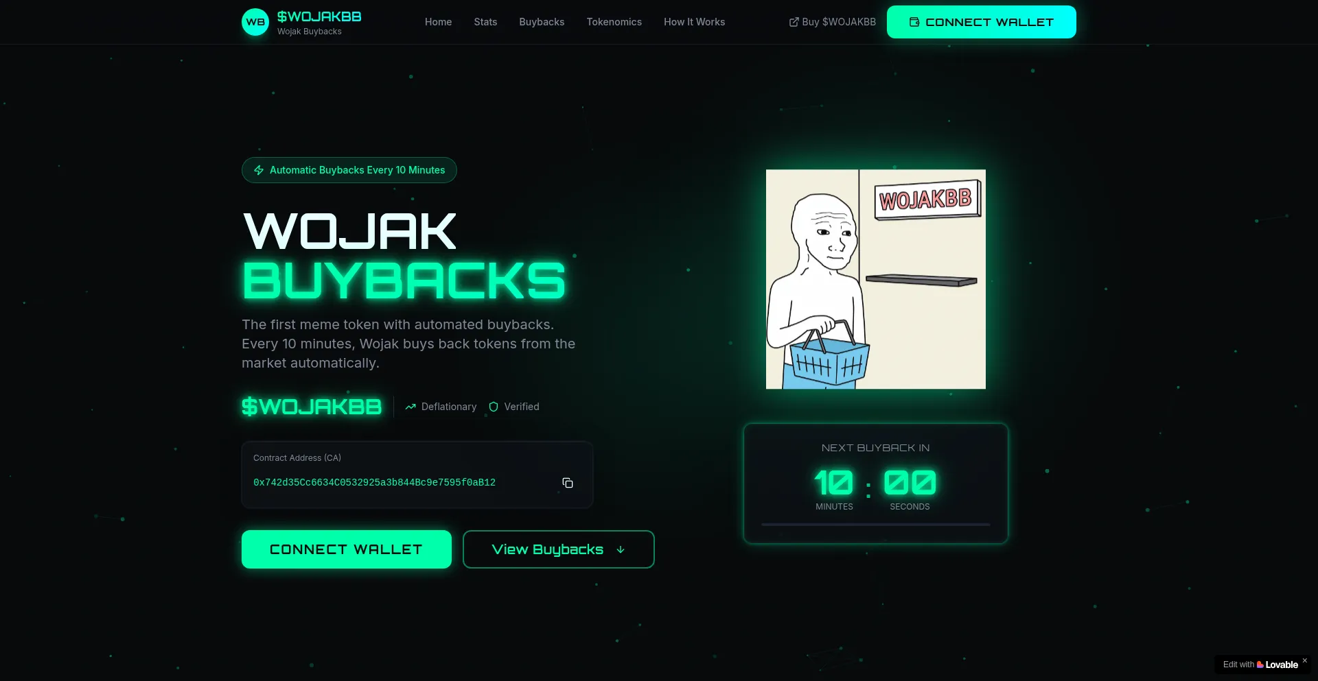 $WOJAKBB is the first meme token with automated buybacks every 10 minutes. Watch Wojak buy back tokens automatically, creating constant buying pressure and deflationary tokenomics.