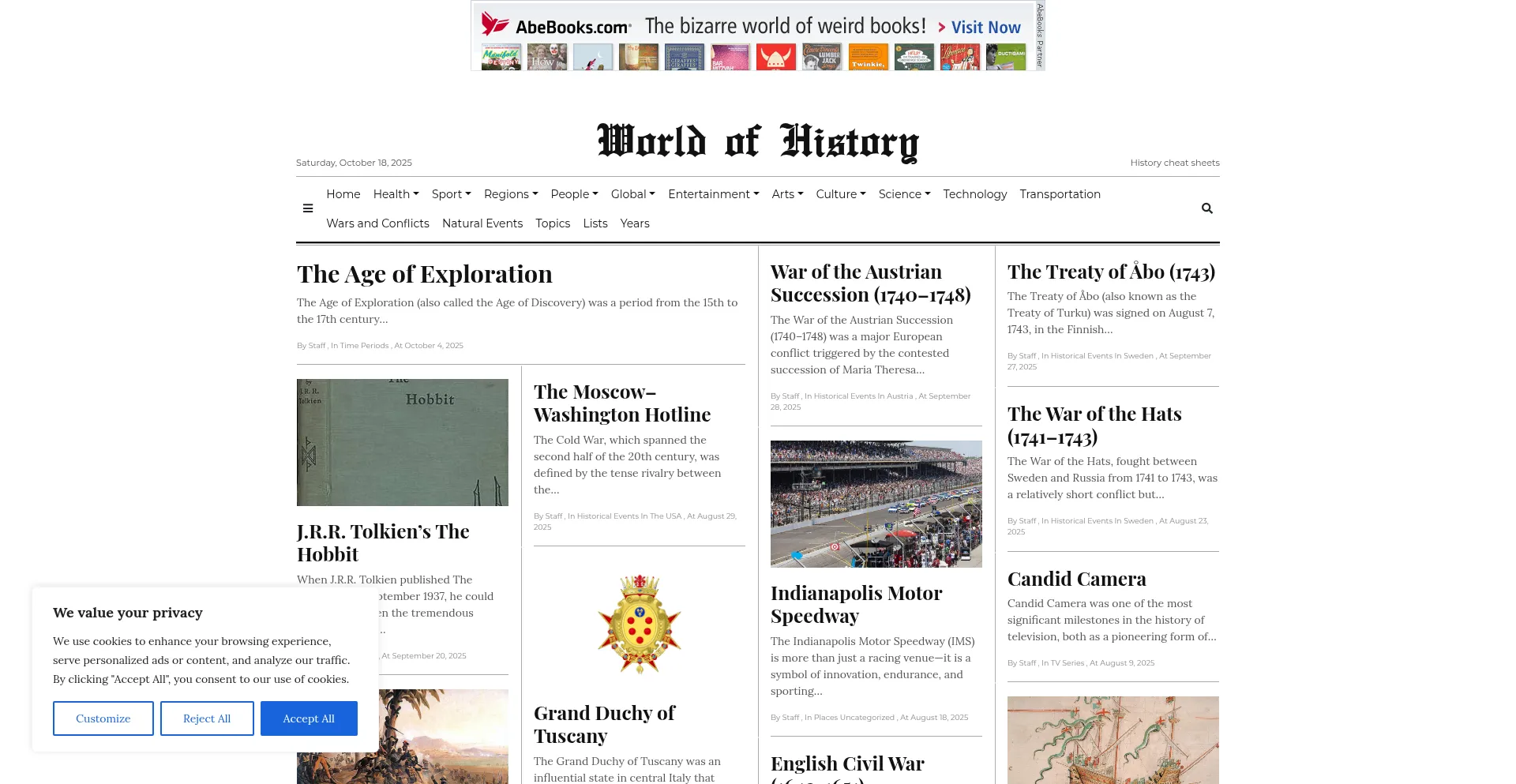 Die Website implementiert Cookie-Zustimmungsmechanismen in Compliance mit Datenschutzregulierungen wie DSGVO oder CCPA. Dies demonstriert, dass worldofhistorycheatsheet.com Datenschutzstandards einhält und Benutzern Kontrolle über persönliche Datenerfassungspraktiken bietet.
