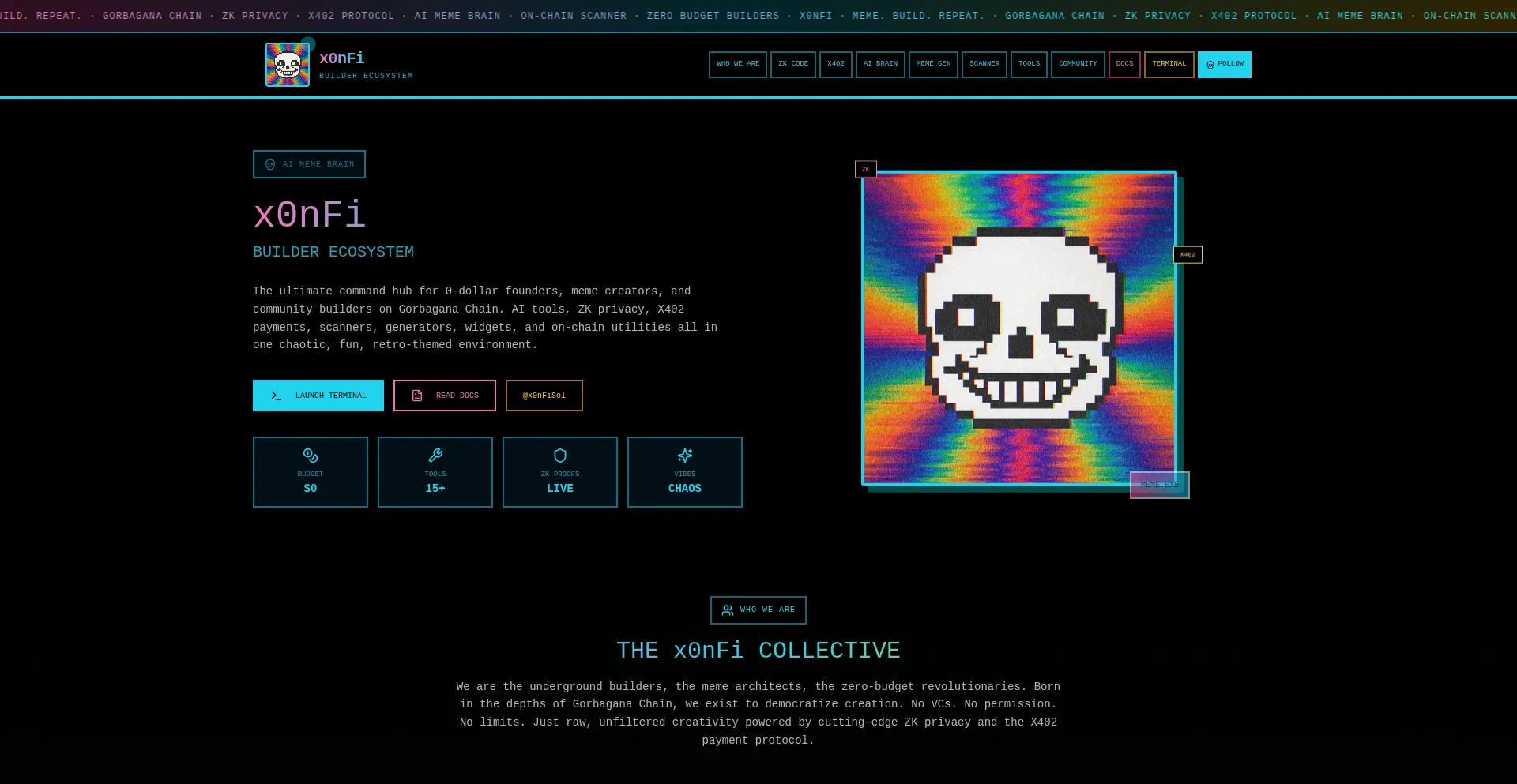 x0nFi: The ultimate builder ecosystem for 0-dollar founders, meme creators, and community builders on Gorbagana Chain. AI tools, scanners, generators, and on-chain utilities.