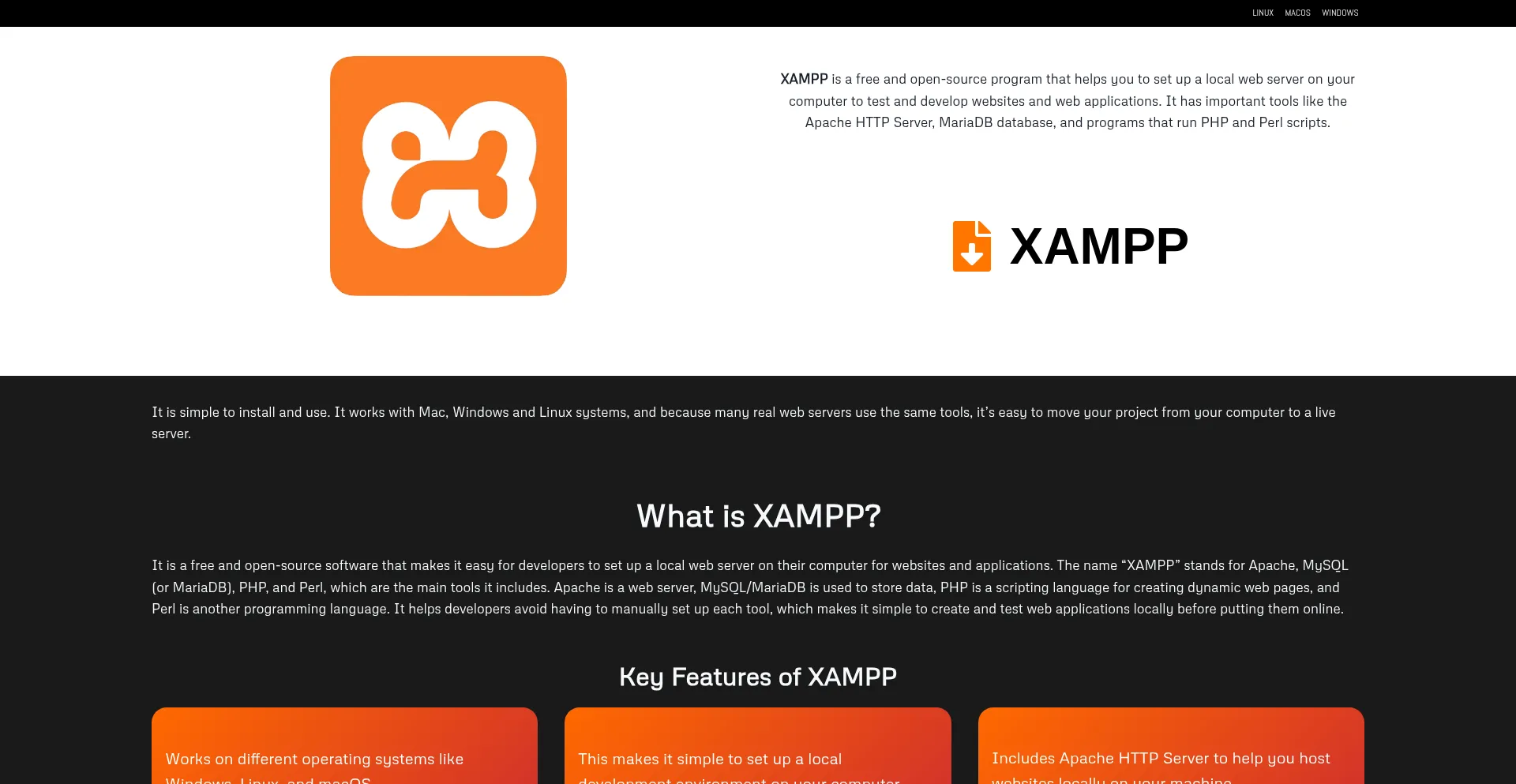 Download XAMPP for Mac, Windows and Linux. XAMPP is a free and open-source program that helps you to set up a local web server on your computer