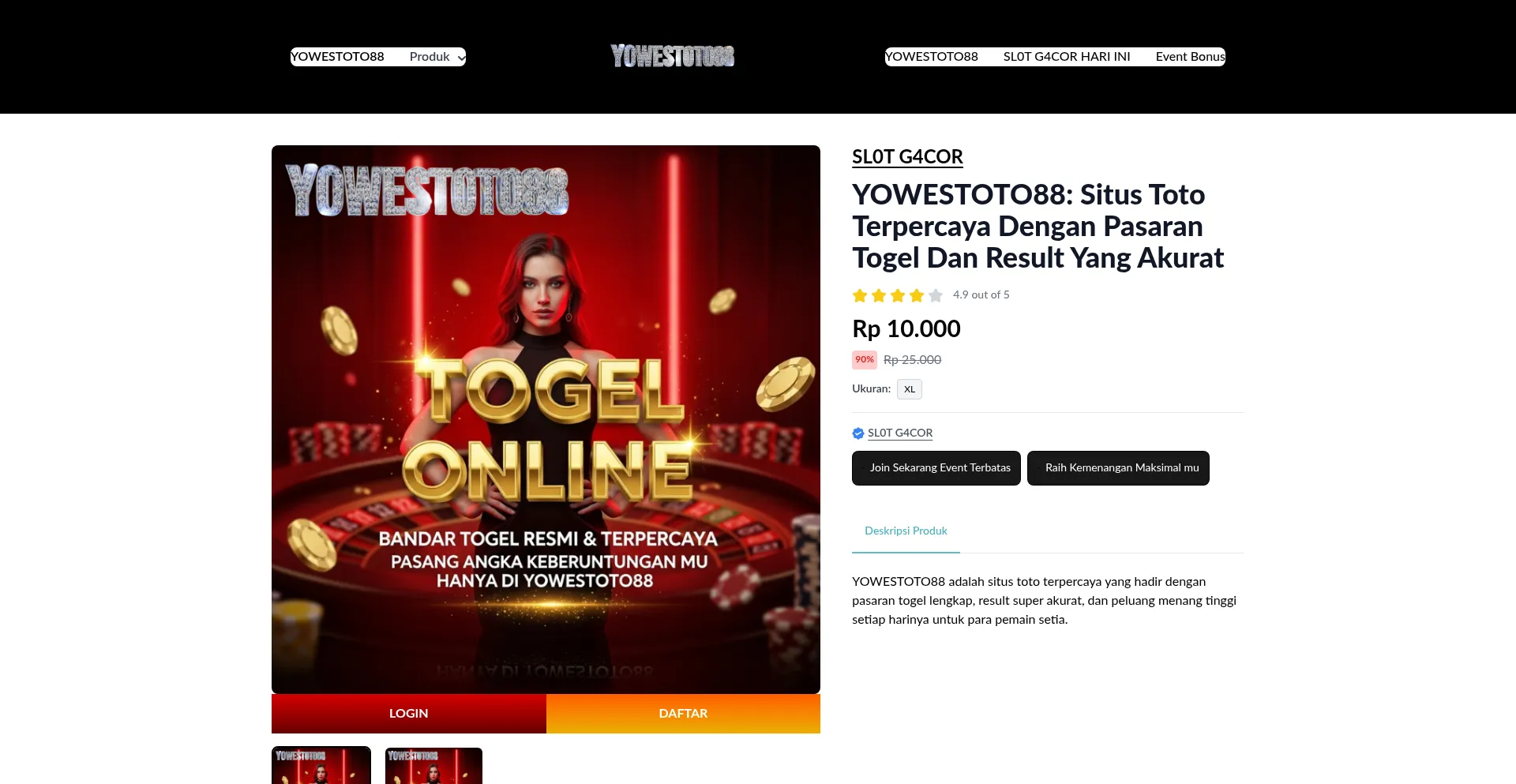 YOWESTOTO88 adalah situs toto terpercaya yang hadir dengan pasaran togel lengkap, result super akurat, dan peluang menang tinggi setiap harinya untuk para pemain setia.