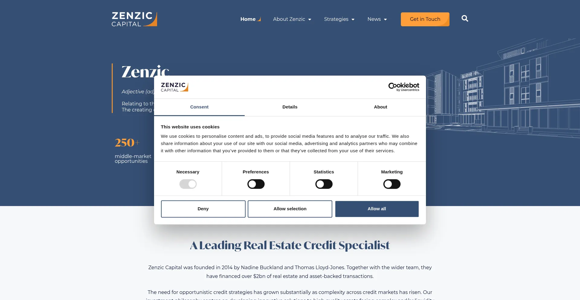 Founded in 2014, Zenzic Capital is a leading Real Estate Credit Specialist founded by Nadine Buckland and Thomas Lloyd-Jones.