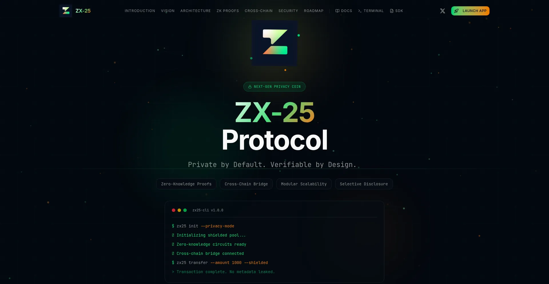 ZX-25 Protocol | Private by Default. Verifiable by Design.